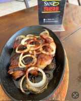 200g de Filé de Porco Acebolado ao Molho Barbecue, Porção de Arroz Branco ou Yakimashe, Porção de Feijão Tropeiro , Vinagrete e Farofa.