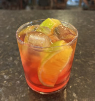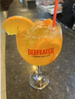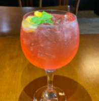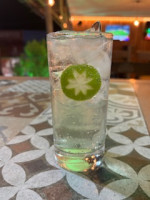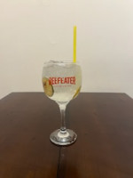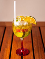 Tangerina, gelo, xarope de tangerina, suco de limão siciliano, Gin duplo e Fanta Laranja.