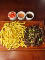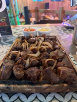 400g de filé Suíno acebolado ao molho de barbecue. Acompanha Vinagrete e Farofa.