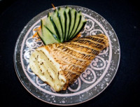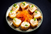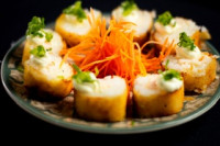 Rolinho de massa harumaki frito com recheio de legumes e cream cheese. Quantidade: 3 peças