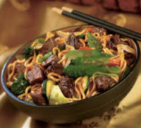 Macarrão oriental, legumes, molho especial a base de shoyu e carne bovina. Porção de camarão, acréscimo de 10,00.