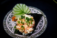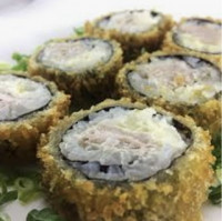 Alga, arroz e camarão. Frito! Finalizado com Crean cheasse. Quantidade: 10 peças