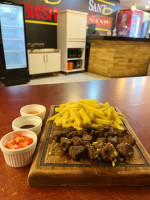 200g Carne do sol em Cubos Acebolado Porção de Arroz Branco ou Yakimashe Porção de Feijão Tropeiro, Vinagrete e Farofa.
