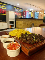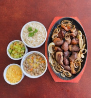 200g de Alcatra em Cubos Acebolado Porção de Arroz Branco ou Yakimashe, Porção de Feijão Tropeiro, Vinagrete e Farofa.