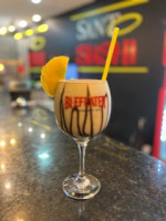 Sumo de laranja bahia,sumo limão taiti, leite condensado, curaçau blu e vodka ou gin